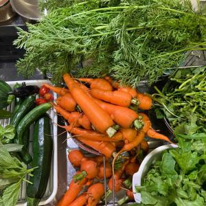 今日は、人参・モロヘイヤ ・シソ・レタス・ズッキーニ・トマト・ナス・キューリ・バジルを収穫させてもらい、購入させて頂きました🙏感謝✨。